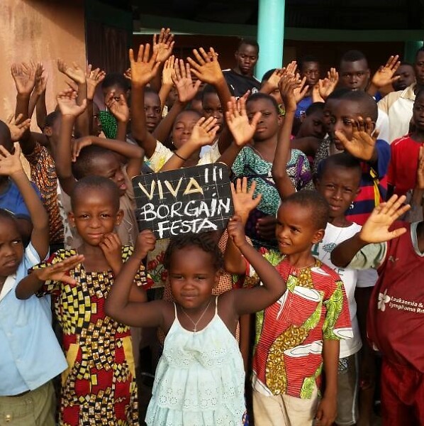 Bilder: die Kinder von Ouenou grüßen Borgoinfesta sowie das Veranstaltungsplakat