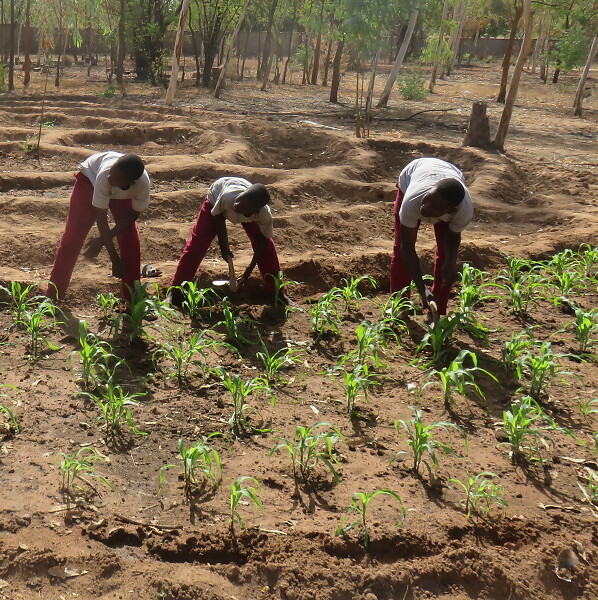 In der Paligwend Schule von Kassou, in Burkina Faso, wird nicht nur in der Klasse mit der Nase in den Büchern gelernt, sondern auch im Freien mit gebeugtem Rücken, mit der Hege und Pflege des Lehrgartens der Schule.