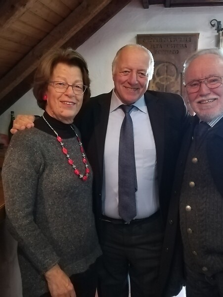 Bilder: das Benefizessen von Toblach, Alpidio Balbo mit dem Bürgermeister Guido Bocher und Mirella Toller