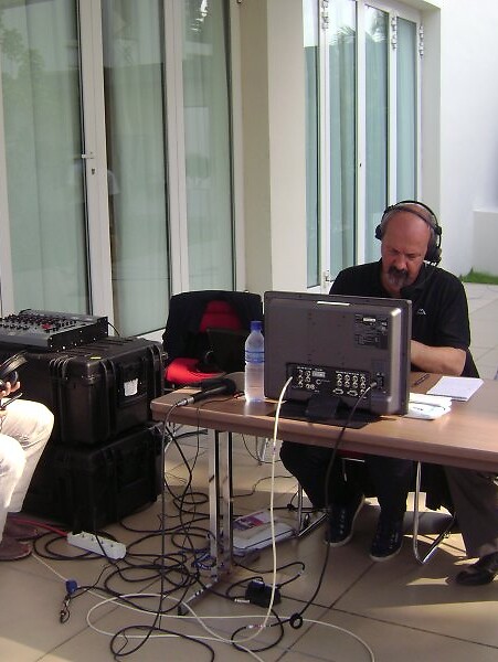 Foto: Papst Benedikt mit dem Vorsitzenden der Bischofskonferenz des Benin, Mons. Antoine Ganye, und dem Apostolischen Nuntius Mons. Michael Blume; Alpido Balbo mit dem Vatikankenner des Tg1, Fabio Zavattaro, während der Live-Übertragung der Messe.