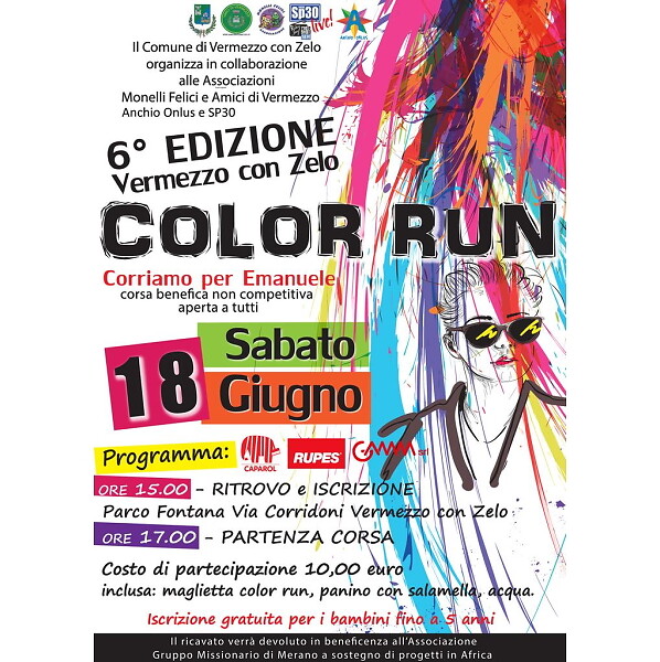 In Vermezzo con Zelo findet erneut der „Color Run“ für Emanuele Combi statt. Der Volkslauf findet am Samstag, den 18. Juni in Memoriam des jungen Mannes statt, der allzu früh verschieden ist, und in dessen Gedenken die Bibliothek der Oberschule benannt wurde, die die Meraner Missionsgruppe „ein Brunnen zum Leben“ in Kouande, im Benin, errichtet hat.