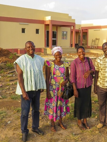Bilder: Dr. Giorgio Panizza und Clementine Zoma (zweite von rechts) mit einigen Mitarbeitern vor dem Hilfszentrum „Paligwend“.