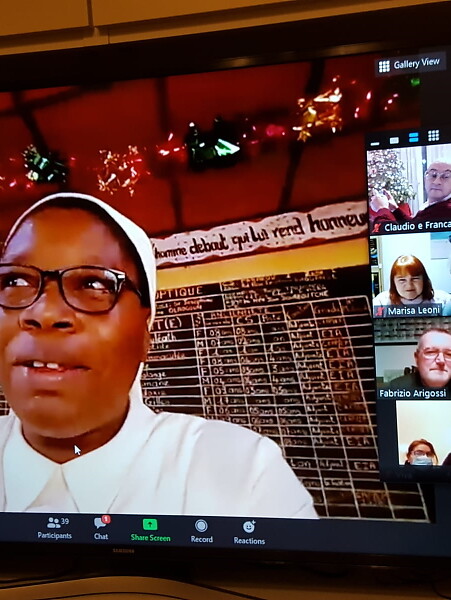 Während der Verlosung auf „Zoom“ haben sich auch zwei Freunde aus Benin gemeldet: Schwester Josephine, von der „Hibiscus“ Schule von Parakou und Pamelo, ein Universitätsstudent der dank einer Meraner Spenderin studieren kann.
