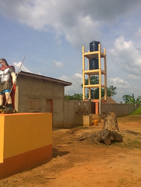 Das erste Etappenziel war Agrimey, ein kleiner Weiler in den Weiten der Diözese Abomey. Dort, in der Nähe der Kirche zum „Heiligen Erzengel Michael“ hat der GMM im heurigen Jahr eine Brunnenbohrung mit einem piezometrischen Turm und einer Photovoltaikanlage realisiert.