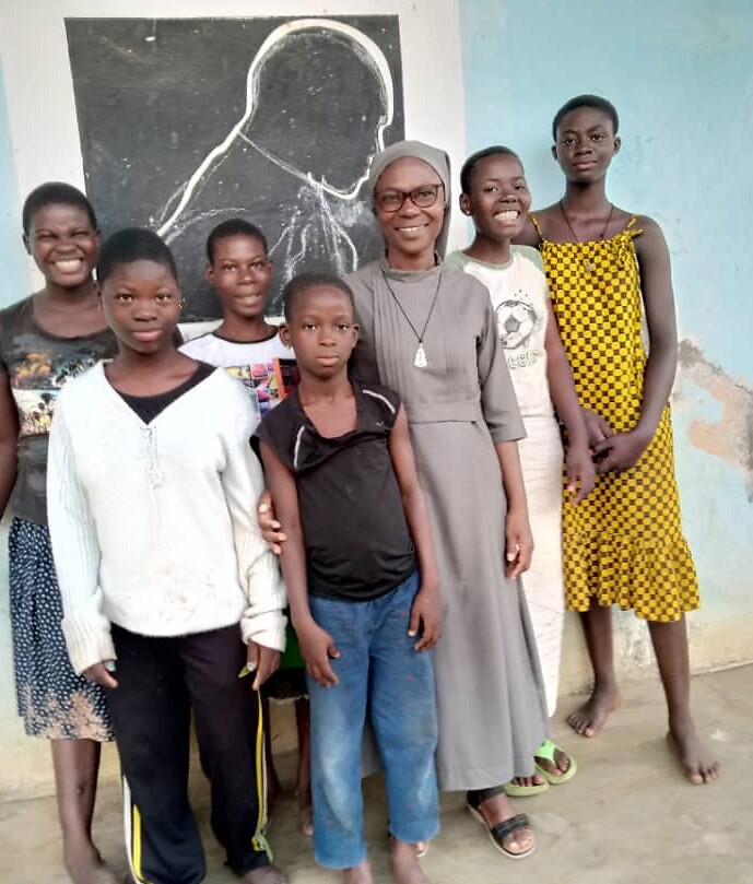 Auf dem Foto: Einige der Mädchen, die von den Nonnen von „Nôtre Dame de Nazareth“ begrüßt werden