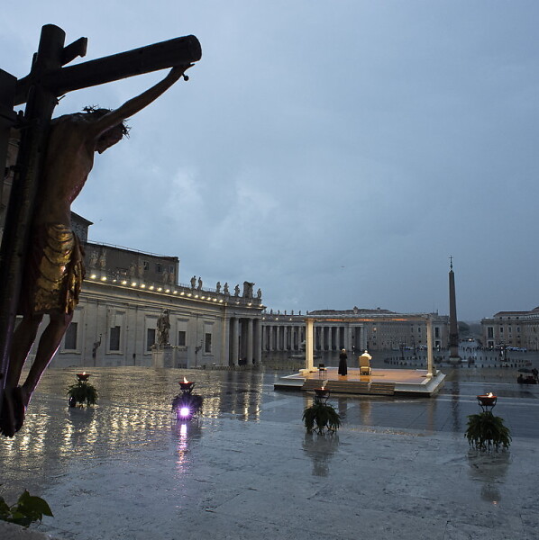 “The Lord asks us and, in the midst of our tempest, invites us to reawaken and put into practice that solidarity and hope capable of giving strength, support and meaning to these hours when everything seems to be floundering. The Lord awakens so as to reawaken and revive our Easter faith. We have an anchor: by his cross we have been saved. We have a rudder: by his cross we have been redeemed. We have a hope: by his cross we have been healed and embraced so that nothing and no one can separate us from his redeeming love”.