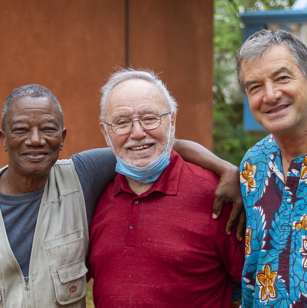 Sur la photo : Alpidio Balbo à Cotonou au Bénin, avec Grégoire Ahongbonon et Franco Fasoli.