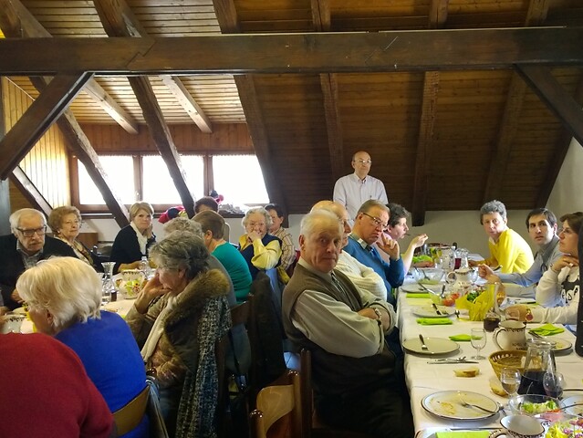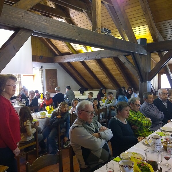 Sur la photo : le déjeuner de bienfaisance et l’intervention d’Alpidio Balbo à l’église paroissiale de Dobbiaco