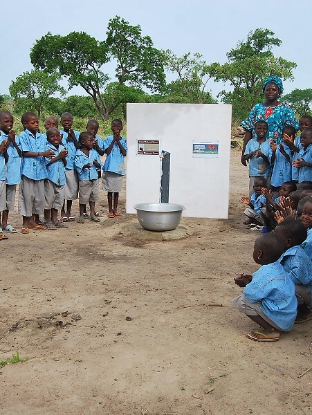 Le puits est complété d’un château d’eau avec réservoir qui se remplit grâce à une pompe hydraulique alimentée par énergie photovoltaïque. En plus des services hygiéniques de l’école et du potager didactique cultivé par les élèves, l’eau est également utilisée par les habitants du village.