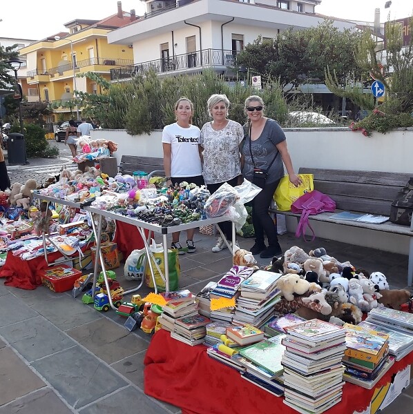 Sur leurs bancs bien décorés, nos amies font étalage d’objets de petit artisanat qu’elles produisent elles-mêmes avec grand art et elles diffusent aussi le matériel faisant publicité des activités du GMM. En plus de quelques présences au marché de petits objets d’antiquaire, vintage, artisanat et bijoux de fantaisie de la “Movida de Pais”, la manifestation qui se déroule chaque été dans le vieux Riccione, le groupe est aussi retourné sur le Marché des enfants de Viale Tasso, tout près du bord de mer, où ont été mis en vente des jouets de deuxième main.