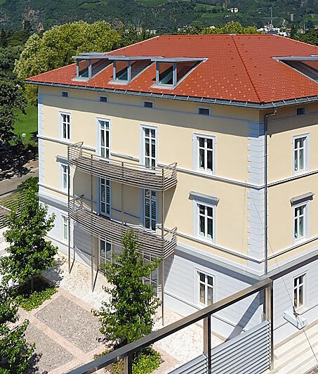 Sur les photos : Le logo et le siège de la Fondation Cassa di Risparmio di Bolzano