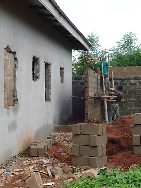 À Abomey on a commencé la restructuration d’un édifice destiné à recevoir les professeurs en déplacement et provenant des universités catholiques locales. L’œuvre est financée par le GMM.