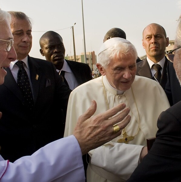 Une poignée de mains avec baiser à l'anneau et un rapide échange de quelques mots sur les cents voyages d'Alpidio Balbo en Afrique: c’est un premier moment offert au GMM durant la première journée de la visite apostolique de Benoît XVI au Bénin.