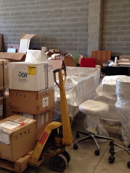 Nelle foto: le apparecchiature mediche pronte per la spedizione ed il centro medico "Graziano Bortolotti"