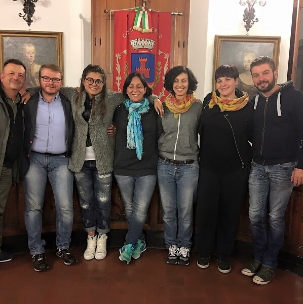 Nella foto: il dottor Brucoli (da sin.) ed il sindaco di Vernio, Giovanni Morganti, insieme ad alcuni rappresentanti del Circolo Zona Rossa.