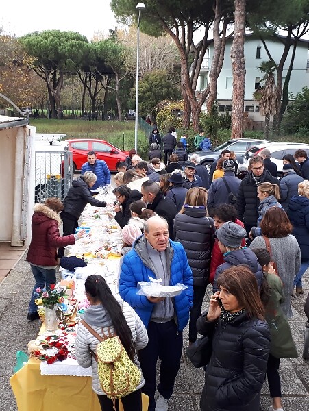 Alla raccolta di fondi della parrocchia di Riccione hanno contribuito le mamme che hanno sfornato i dolci da mettere in vendita tra i parrocchiani. Tra questi, anche il comico Paolo Cevoli che non ha mancato di acquistare una torta per il pranzo domenicale.