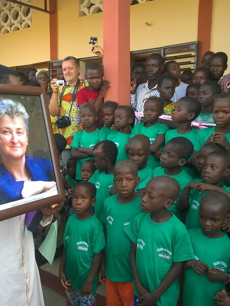 Nelle foto: Marino Santuari con mons. Antoine Sabi Bio ed Alpidio Balbo; l’inaugurazione della scuola “Maria Cristina Santuari” di Yakabissi (2016), costruita grazie a contributi della Regione autonoma Trentino Alto Adige, del Merano WineFestival e di familiari ed amici dell'insegnante scomparsa.
