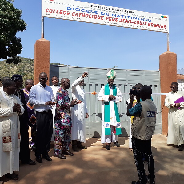 Nelle foto: la benedizione della nuova scuola di Kouande; studentesse e studenti dell’indirizzo professionale