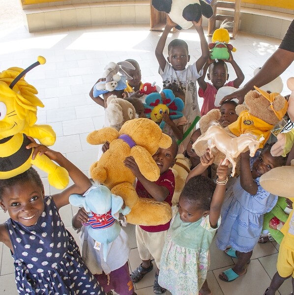 Grande gioia tra i bambini dell'orfanotrofio "Santa Teresa del Bambin Gesù" di Tchatchou, in Benin, uno dei centri ai quali sono stati destinati i peluche donati da Eliane e Giuliano, due amici trentini del Gruppo Missionario "Un pozzo per la vita" Merano.