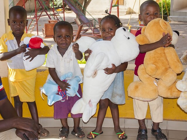 Inviati con i container lo scorso autunno, i peluche sono stati distribuiti prima di Natale ai bambini di alcuni centri d'accoglienza sostenuti dal GMM. Le foto di Fabrizio Arigossi hanno colto la felicità e la festa dei bambini di Tchatchou per il dono inatteso.