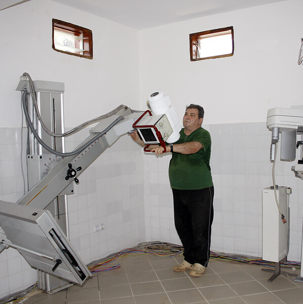 Nelle foto, Adriano Basso al lavoro e la palazzina del reparto radiologico del "Selome".